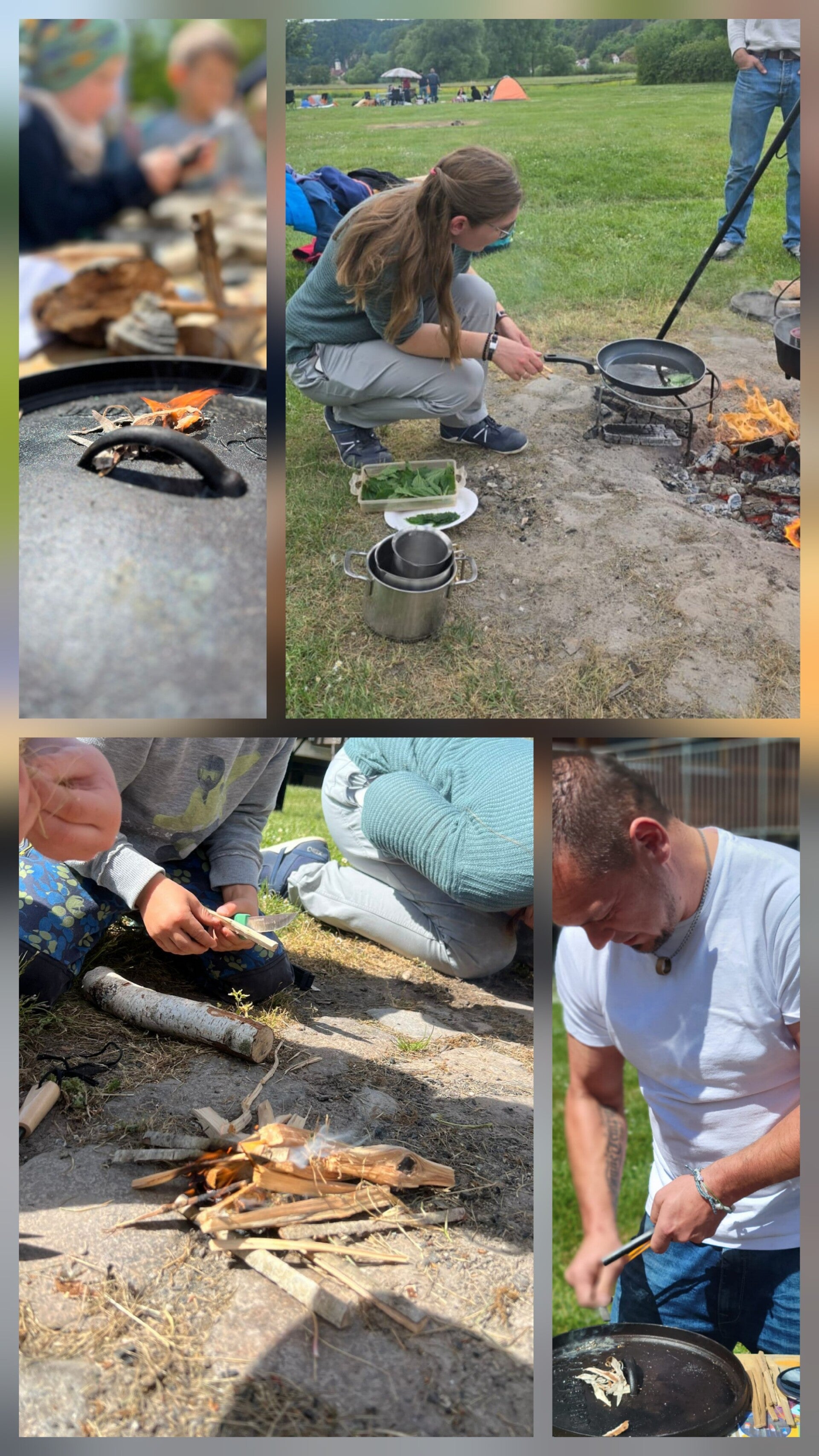 Gemeinsam mit ihren Eltern erlebten rund 10 Kinder einen abenteuerlichen Nachmittag voller Spiel, Spaß und Lagerfeuerromantik. Neben lustigen Spielen und kleinen Leckereien wagten sich die Teilnehmenden ans Feuermachen – ganz traditionell mit Feuerstahl, Char-Cloth und Birkenrinde. Ein echtes Erlebnis für Groß und Klein inmitten der Natur!